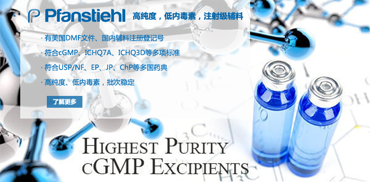 “熱烈祝賀Pfanstiehl的注射級甘氨酸Glycine(G-140)喜獲CDE登記號F20250000403, 這是Pfanstiehl產品獲得的第18個CDE登記號!”甘氨酸在醫藥輔料制劑中應用廣泛,, 可作為緩沖劑,增溶劑,穩定劑等,具有諸多優勢。Pfanstiehl秉承一貫高品質理念,為滿足全球生物制藥行業對于高品質甘氨酸的需求,隆重推出的注射級甘氨酸Glycine (G-140), 具有超高純度,超低內毒素,超低金屬殘留的特點,單獨檢測29種金屬離子,并且新增DNA,RNA,DNA酶,RNA酶和脂肪酶,亞硝酸鹽等多項質量指標的檢測,符合多國藥典規定(USP, EP, BP, JPE, ChP),可用于生物治療性藥物和疫苗的生產。產品信息:· 產品名稱:Glycine, High Purity, Low Endotoxin, Low Metals, USP, EP, BP, JPE, ChP (G-140)· 中文名稱:甘氨酸· 分子式:C2H5NO2· 分子量:75.07 g / mol· CAS號:56-40-6· 產品貨號:G-140產品特點: · 超高純度,超低內毒素,超低微生物含量,超低金屬雜質殘留· 質量指標新增DNA,RNA,DNA酶,RNA酶,脂肪酶和亞硝酸鹽檢測· 符合多國藥典:USP, EP, BP, JPE, ChP· 符合ICH Q3D標準· 符合GMP標準· 已獲DMF和CDE登記號 產品應用:· 緩沖劑· 穩定劑· 增溶劑如果您對Pfanstiehl注射級別Glycine G-140感興趣,歡迎聯系Pfanstiehl 中國區代理商北京西美杰科技有限公司獲得如下詳細的產品概況說明文件和測試樣品。Pfanstiehl Inc.最新產品系列如下,歡迎聯系北京西美杰科技有限公司獲取100g裝免費樣品。北京西美杰科技有限公司為Pfanstiehl中國代理,為客戶提供完善的技術支持與售后服務。歡迎撥打西美杰客服電話400-050-4006或者登陸網站www_xmjsci_com.1ztc.com了解更多信息。 更多>